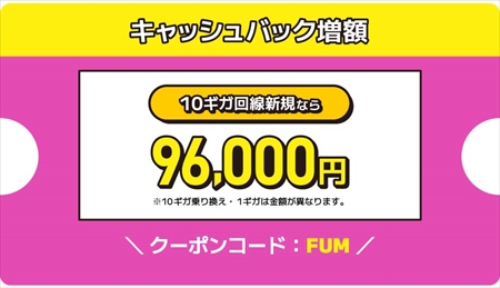 - キャッシュバック 1ギガ40,000円(10ギガ45,000円)