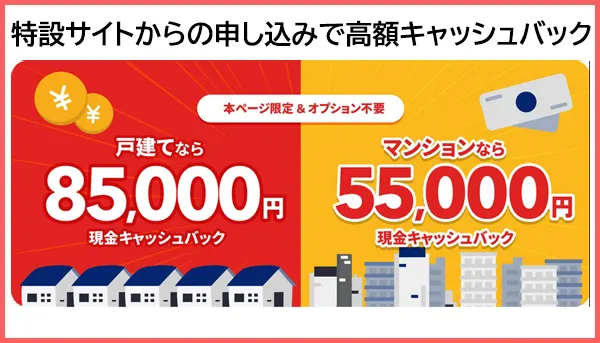 | キャンペーン | キャッシュバック42,000円 工事費実質無料 特設サイト限定月額料金 |