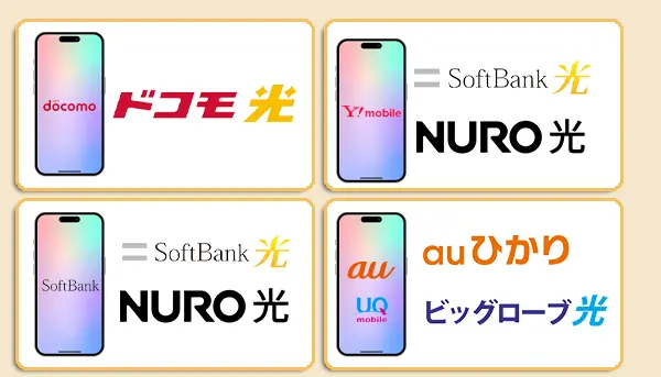 auまたはUQモバイルユーザならばビッグローブ光、NURO光ならばソフトバンク光を選ぶとセット割が適用になります。